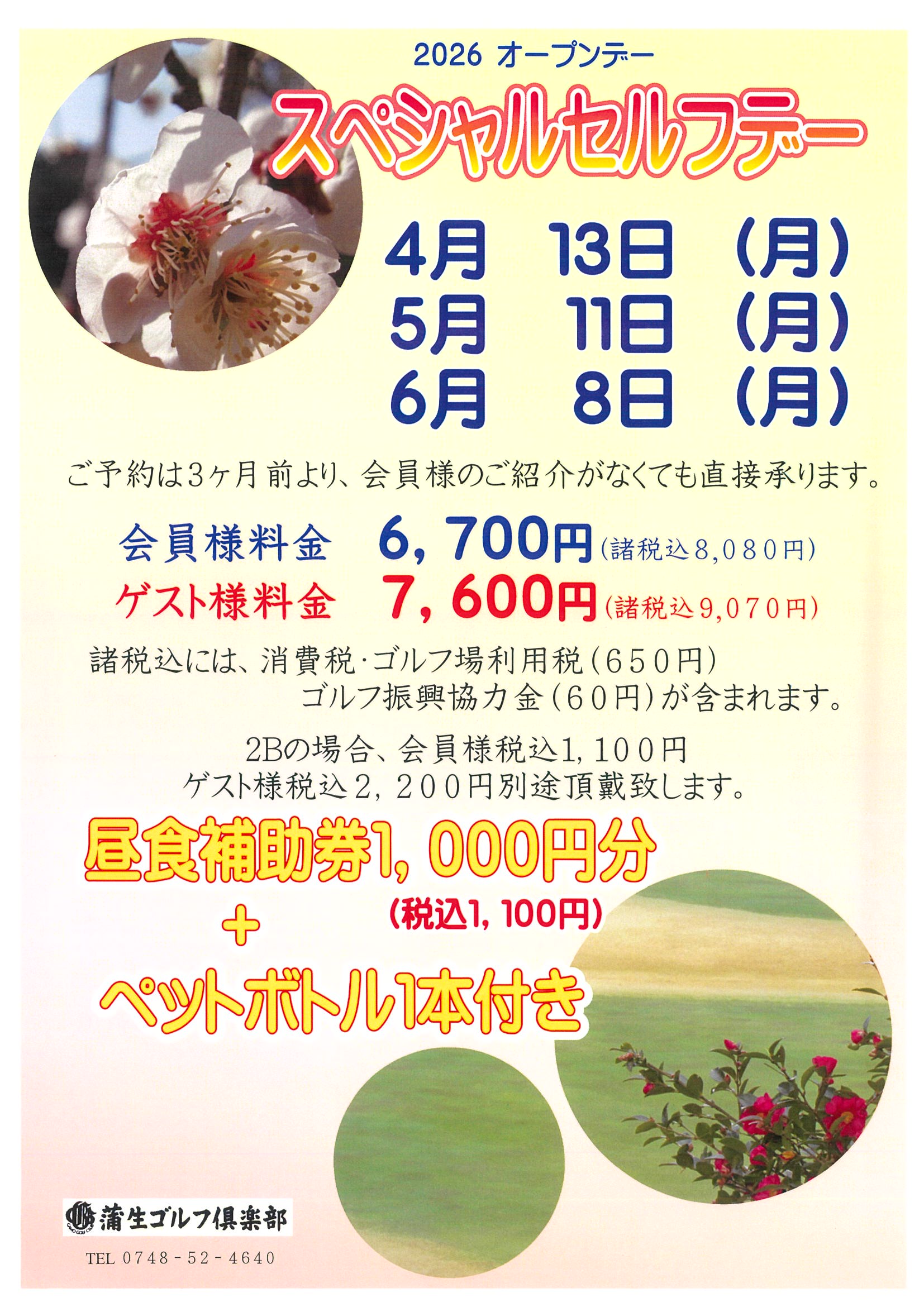 オープンデー スペシャルセルフデー 4月13日(月)・5月11日(月)・6月8日(月)