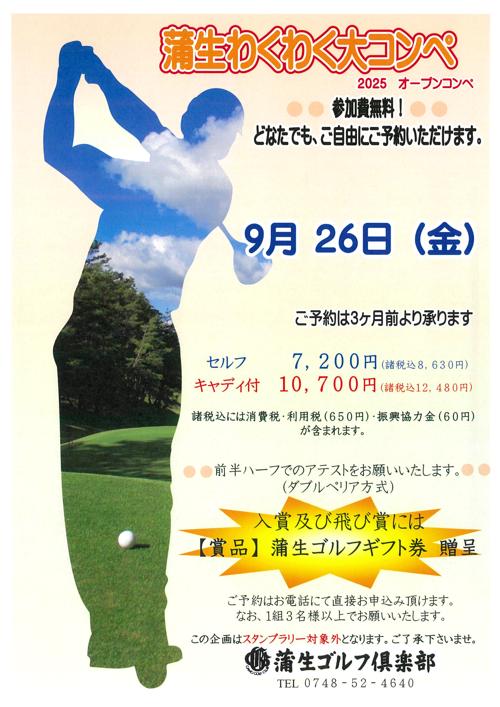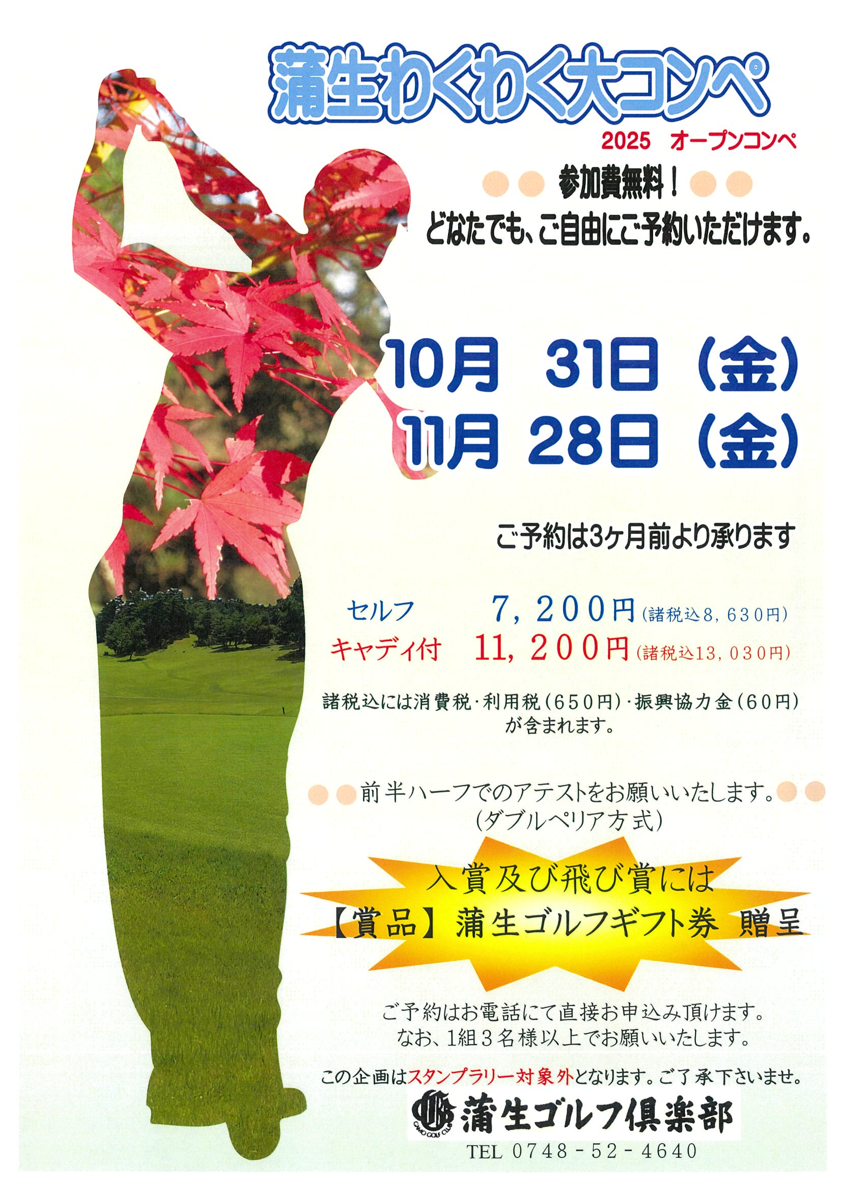 オープンデー 蒲生わくわく大コンペ 9月26日(金)・10月31日(金)・11月28日(金)