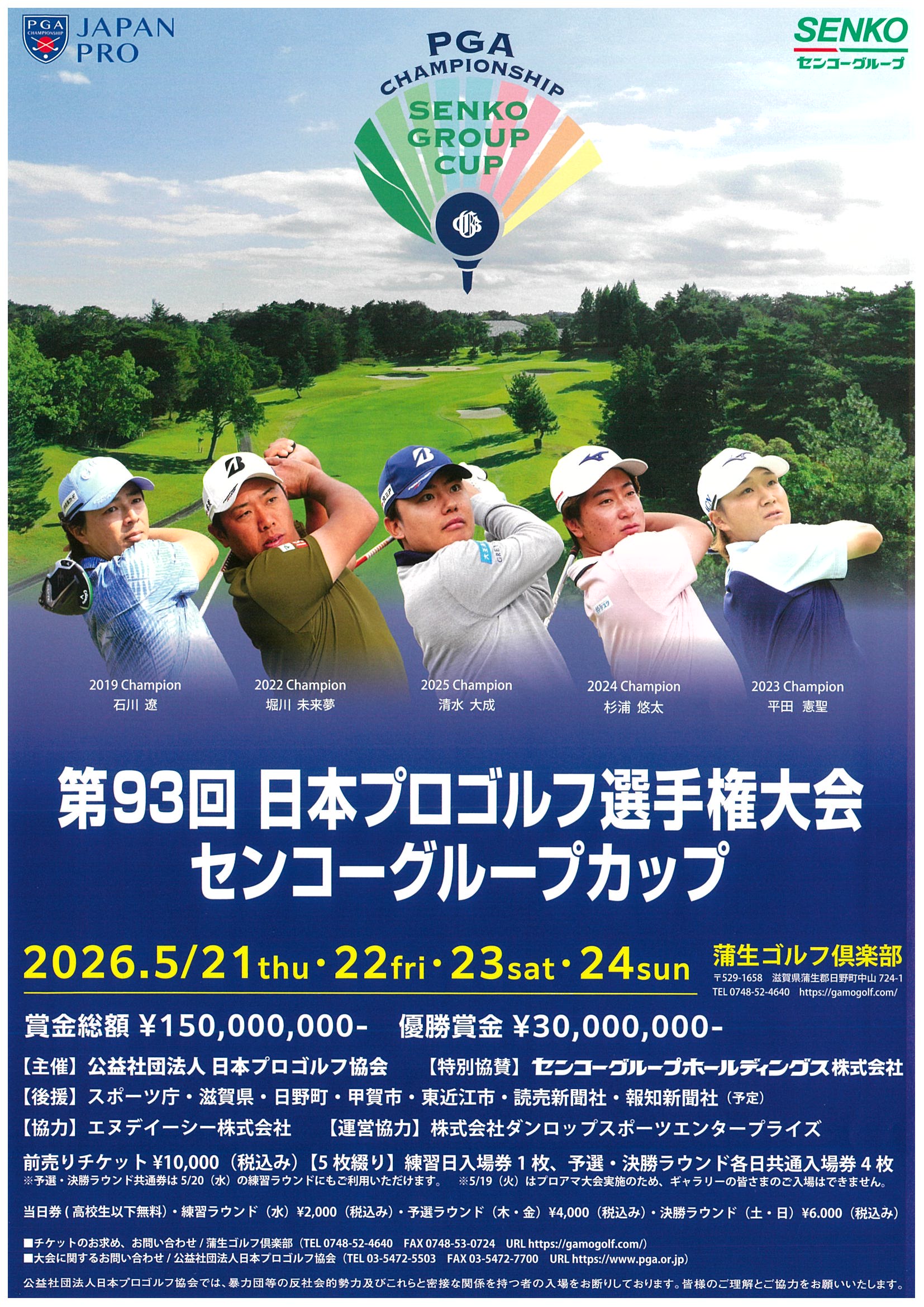 第93回日本プロゴルフ選手権大会センコーグループカップ 日程決定