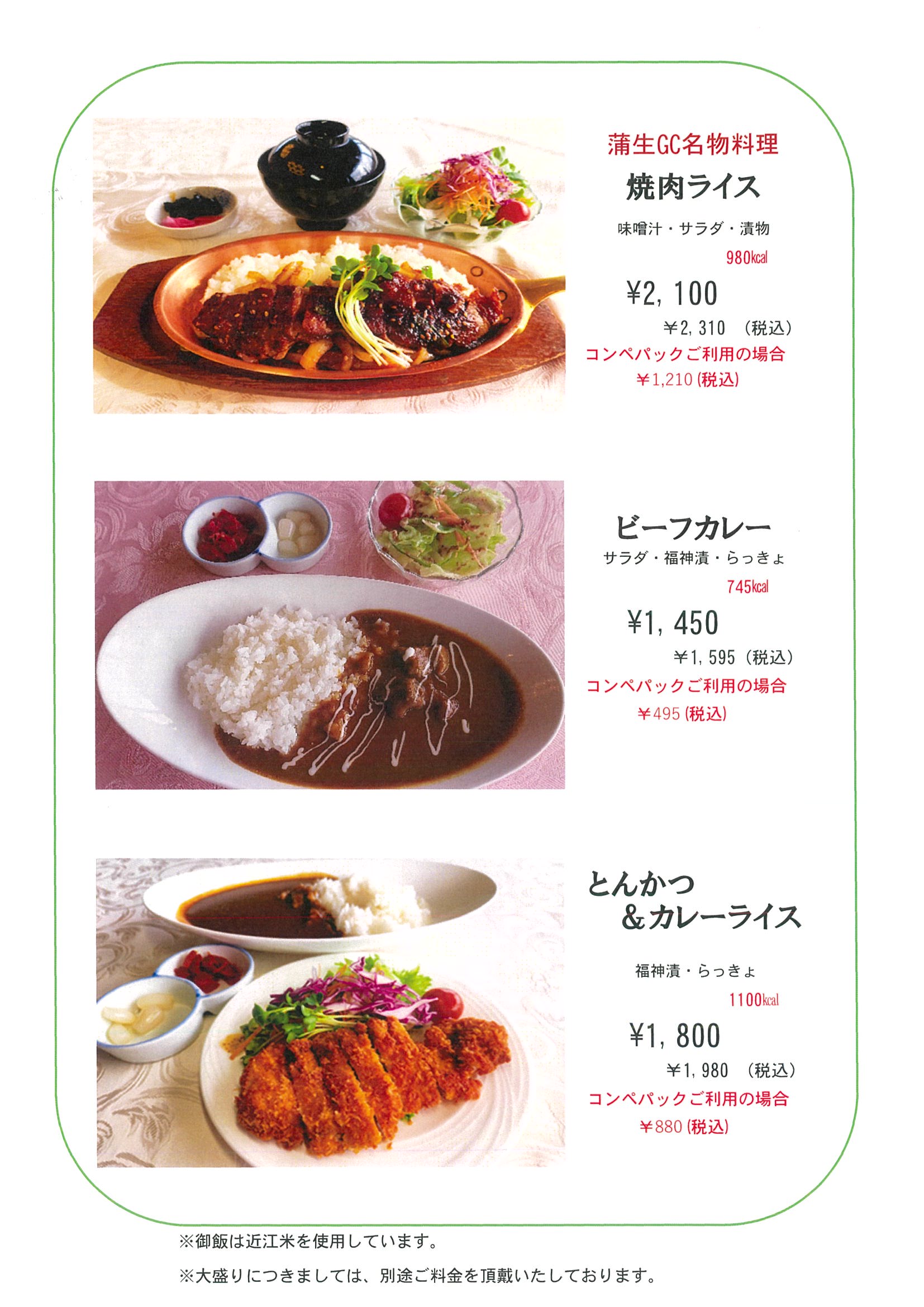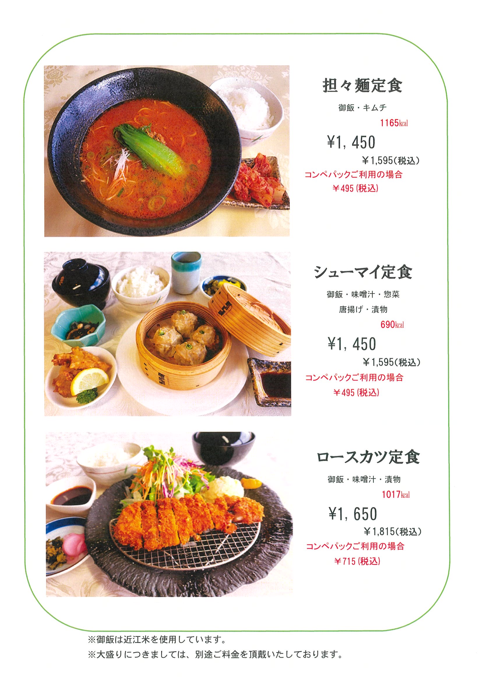朝食・昼食・サイドメニュー